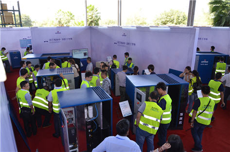 新一代LU系列螺杆式压缩机全面提高了能源使用效率,即使在恶劣的工作环境中也能可靠运行。新款干燥机更是在环保、适应恶劣工况环境的同时,满足客户对洁净空气的需求。我们还有相对应的热能回收,捷能管道等售后服务产品配备,全套压缩空气解决方案帮助客户降低成本,提高效率。在工作人员的带领下,与会代理商前往展厅参观了新产品。