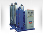 变压吸附设备主要由A、B二只装有碳分子筛的吸附塔和控制系统组成。当压缩空气(压力一般为O.8MPa)从下至上通过A塔时,氧气、二氧化碳和水分被碳分子筛所吸附,而氮气则被通过并从塔顶流出。当A塔内分子筛吸附饱和时便切换到B塔进行上述吸附过程并同时对A塔分子筛进行再生。